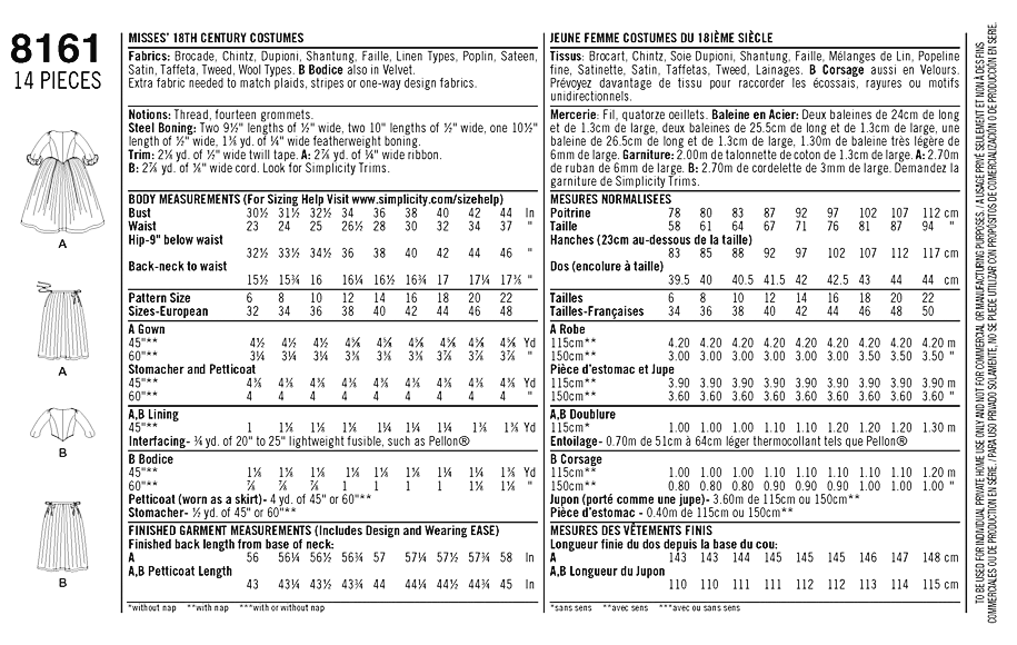 Misses' 18th century highland costumes includes outfits in two styles: the first is a gown with stomacher and petticoat, and the second is a bodice with petticoat and stomacher.