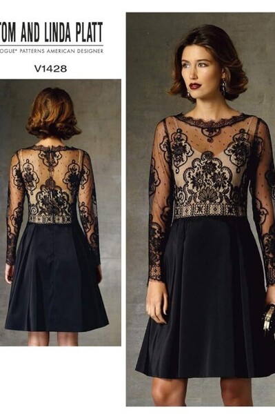 MISSES' DRESS: Lined dress has close-fitting, sheer bodice and sleeves, underbodice with bias shoulder straps, underlined, pleated skirt, and back button/thread loop, and invisible zipper closing. Continuous bias finishes hem on skirt. Note: bodice and sleeves are cut on crosswise grain.