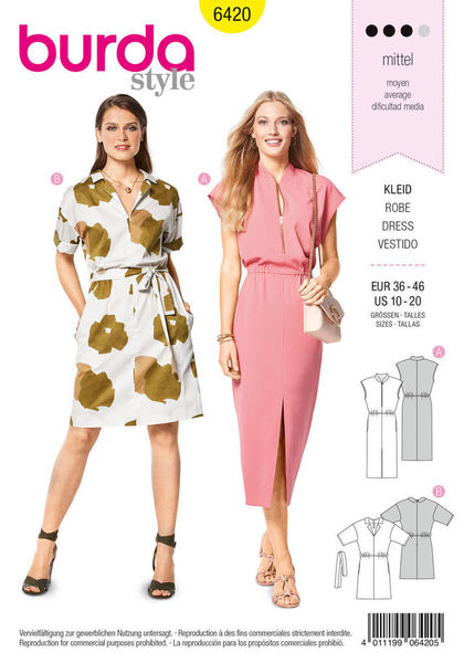 Women who know their style will appreciate dresses with up-to-date fashion details. The sleeveless dress for Misses features a prominent zip fastener. View B is made in a striking print and charms with a small notched collar and a tie belt to accent your waist.