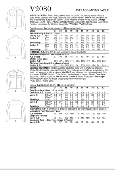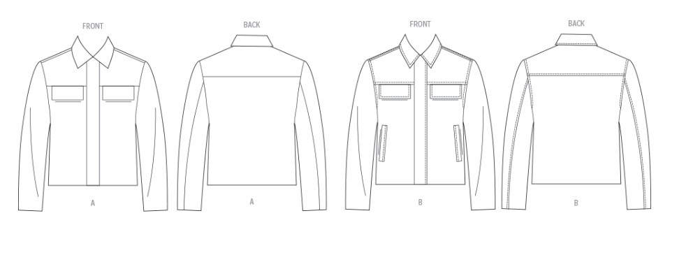Fitted lined jackets have concealed separating zipper closure, yoke, chest pockets with flaps, and long two-piece sleeves. View B has welt pockets and top stitching.