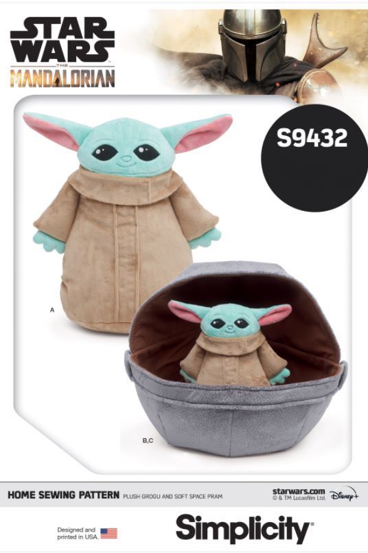 Cuddly soft Grogu in 21" and 11" heights have plush all-in-one body and head construction with stitched-in arms and 3D ears. With a round bottom and weighted with stuffing pellets, they stand alone or sit in a lined soft-sculpture space pram with covered button accents. Definitely Precious Cargo!