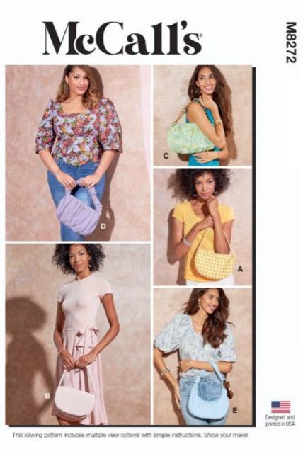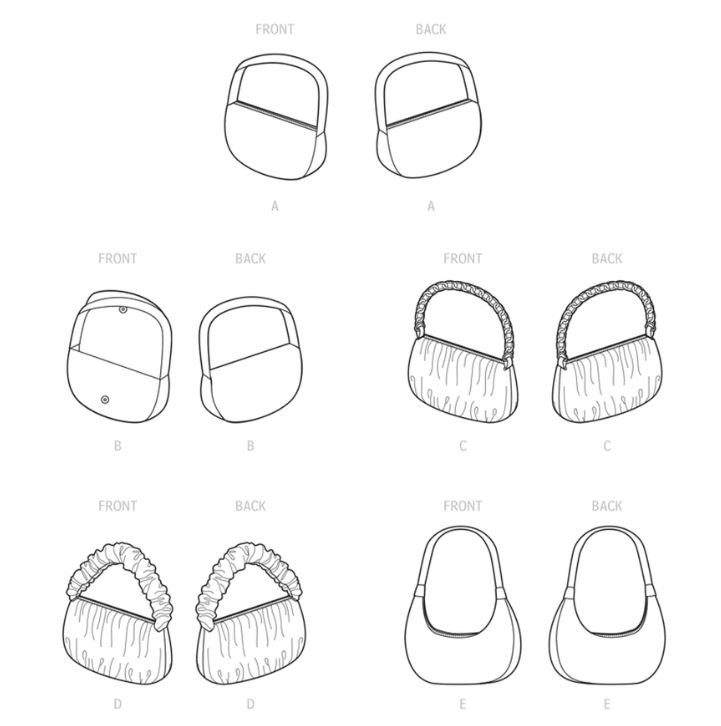 All purses have an inside pocket. Views A, C, D and E have a zipper closure, and view B has a flap and magnet closure.
