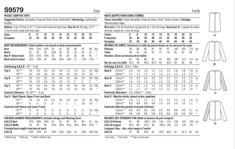 Pretty tops have high-low hem with hook and loop fastener tape at back closure for easy on and easy off dressing. Details include a neck tie collar, a cowl collar and color blocking.