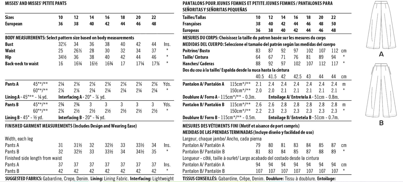 Semi-fitted pants in two lengths have fly front zipper, button waistband, and flared legs . View B has side seam pockets.