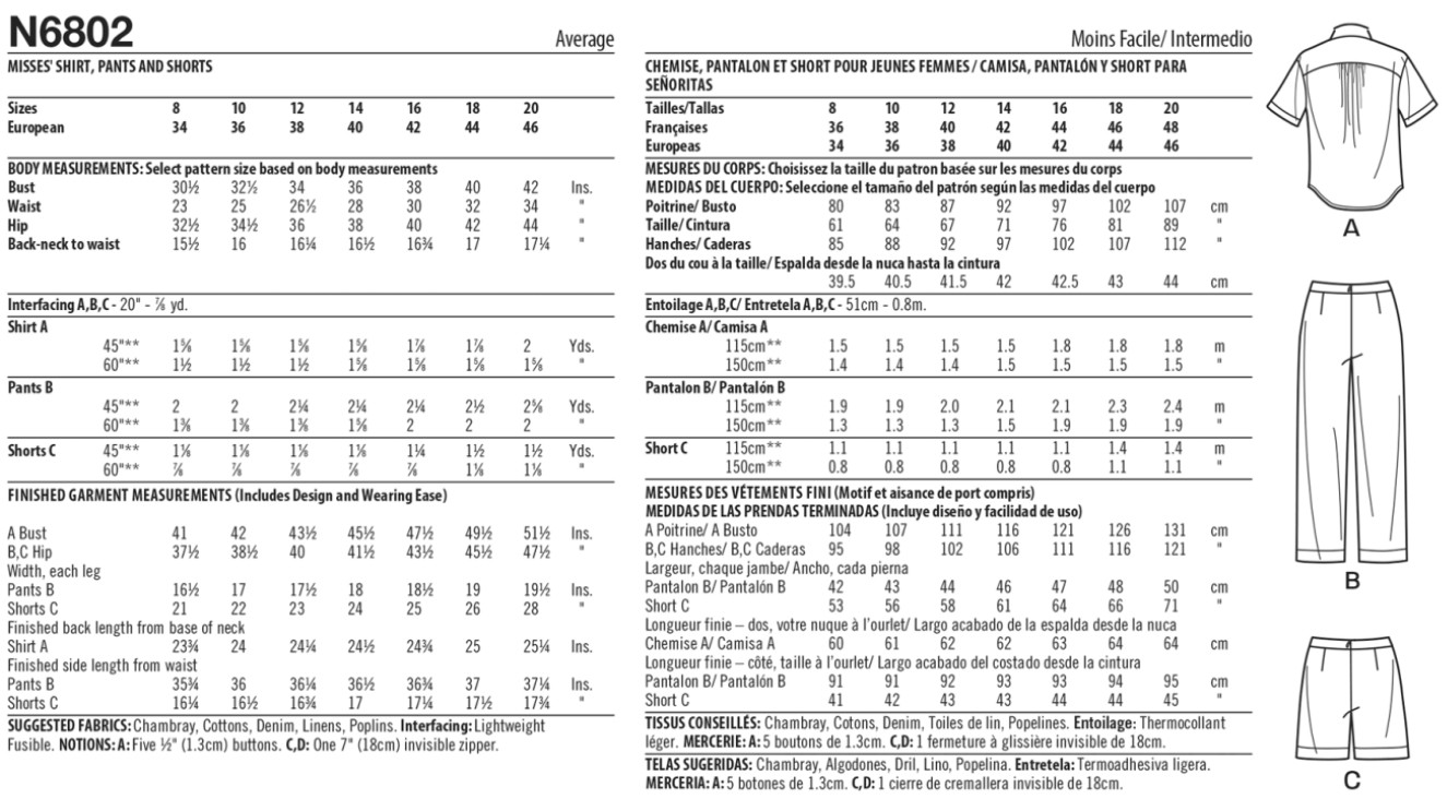 Chambray, Cottons, Denim, Linens, Poplins. Interfacing: Lightweight