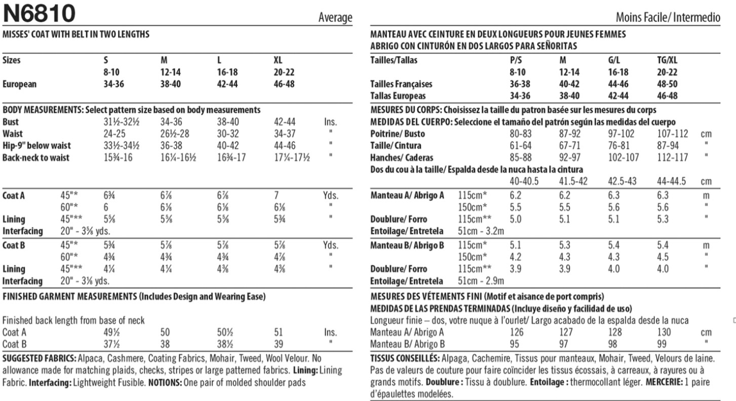 Alpaca, Cashmere, Coating Fabrics, Mohair, Tweed, Wool Velour. No allowance made for matching plaids, checks, stripes or large patterned fabrics. Lining: Lining Fabric. Interfacing: Lightweight Fusible.