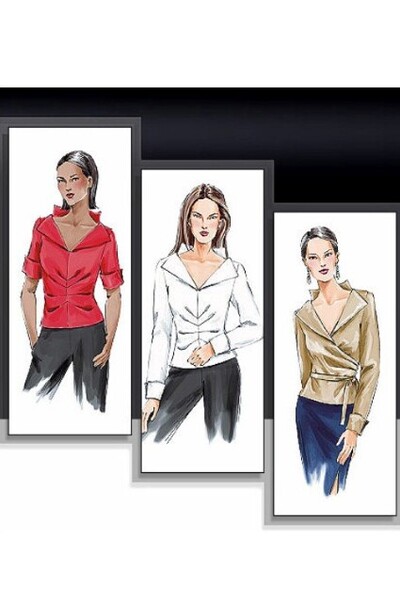 Close-fitting blouse with tucked front.