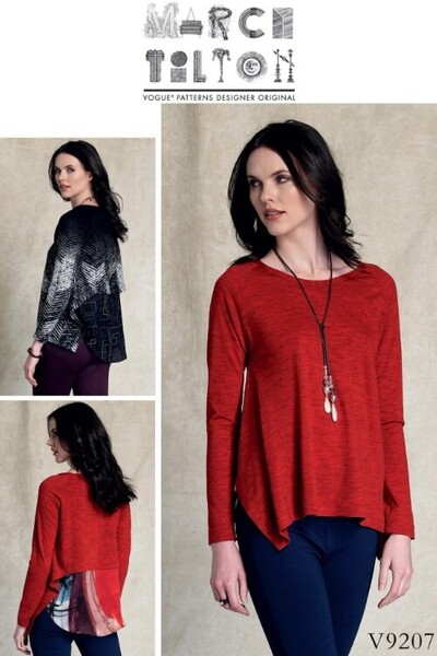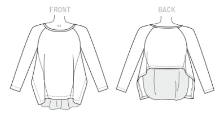 MISSES' TOP: Pullover top (semi-fitted through bust) has raglan sleeves, neck binding, contrast back underlay, stitched hems and shaped hemline. Wrong side will show on hemline.