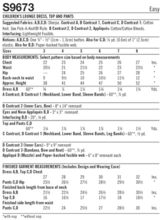 Easy, comfy loungewear for boys and girls have fun applique animal faces. Cuffs, neckband, and lower edge of dresses and tops are knit bands.