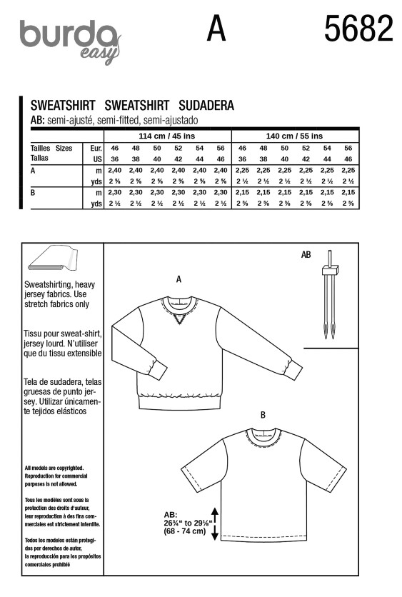 This pattern for our men’s sweatshirt and t-shirt is perfect for beginners. The classic sweatshirt with cuffs is a timeless staple, easy and quick to sew—ideal for a last-minute gift! The t-shirt features a trendy cut with dropped sleeves and drapes beautifully when made with sturdy jersey fabrics. Both styles are simple to make and perfect for creating stylish, comfortable pieces.
