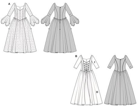 Burda 8198 Medieval Style Fitted and Flared Bridal or Wedding Dress