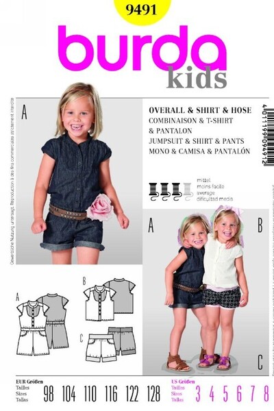 Jumpsuit or pants with T-shirt, same optics. Eye-catching yoke with fine pin-tucks. Shorts C: waist and hems from rip knit, allowing wearing ease.