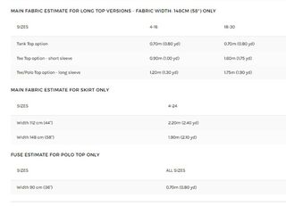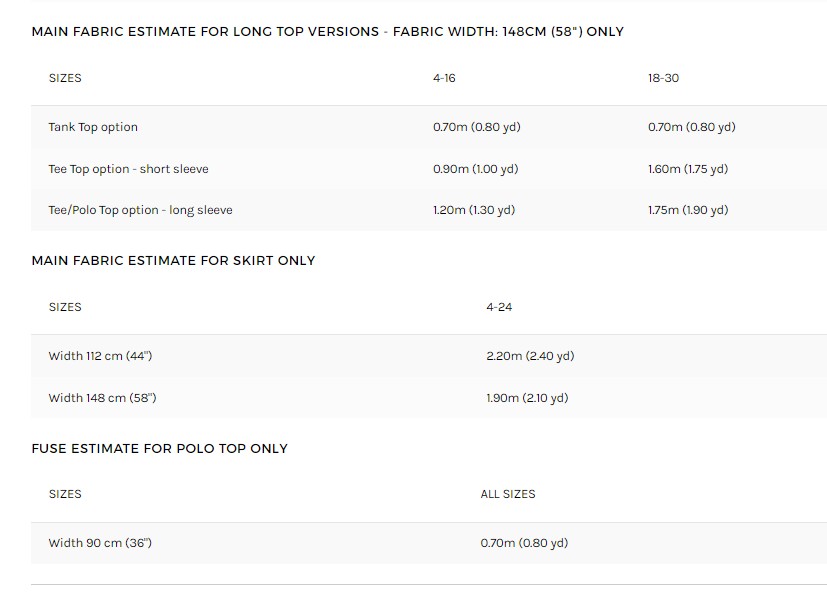 For the bodice and optional knit skirt: Ponte, jersey, unbrushed fleece, tee shirt knit. Bodice must be knit, recommend minimum 180gsm weight with at least 30% stretch