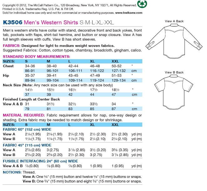 Kwik Sew K3506 Shirts Sewing Pattern