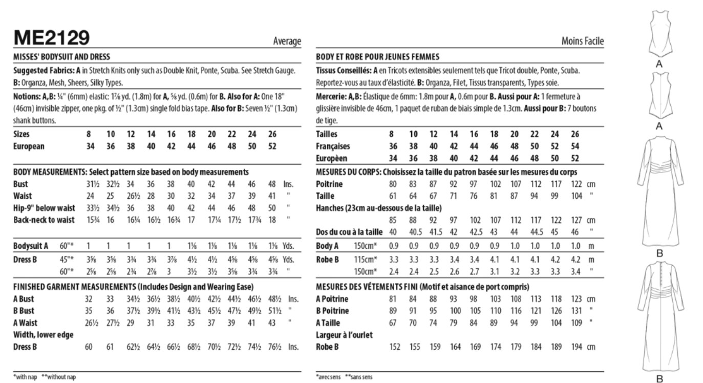 A in Stretch Knits only such as Double Knit, Ponte, Scuba. See Stretch Gauge. B: Organza, Mesh, Sheers, Silky Types.