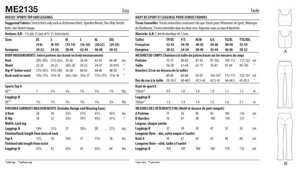 Fabric Suggestions: Stretch Knits only such as Activewear Knits, Spandex Blends, Two-Way Stretch Knits. See Stretch Gauge.