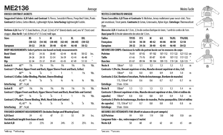 Fabric Suggestions: A,B Fabric and Contrast 1: Fleece, Sweatshirt Fleece, Prequilted Fabric, Ponte. Contrast 2: Cotton, Cotton Blends, Lightweight Nylon. Interfacing: Lightweight Fusible.