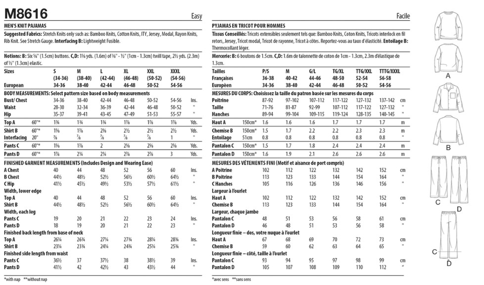 Fabric Suggestions: Stretch Knits only such as: Bamboo Knits, Cotton Knits, ITY, Jersey, Modal, Rayon Knits, Rib Knit. See Stretch Gauge. Interfacing B: Lightweight Fusible.